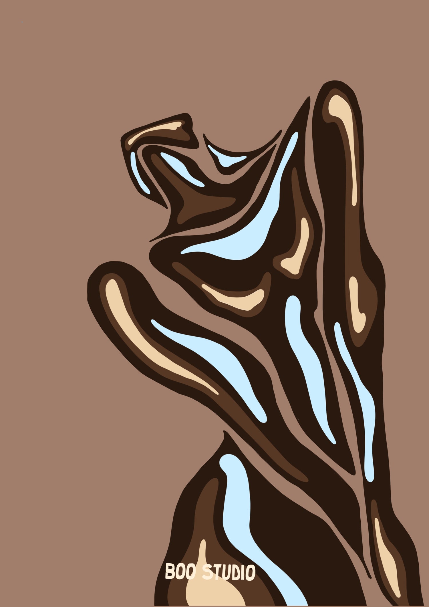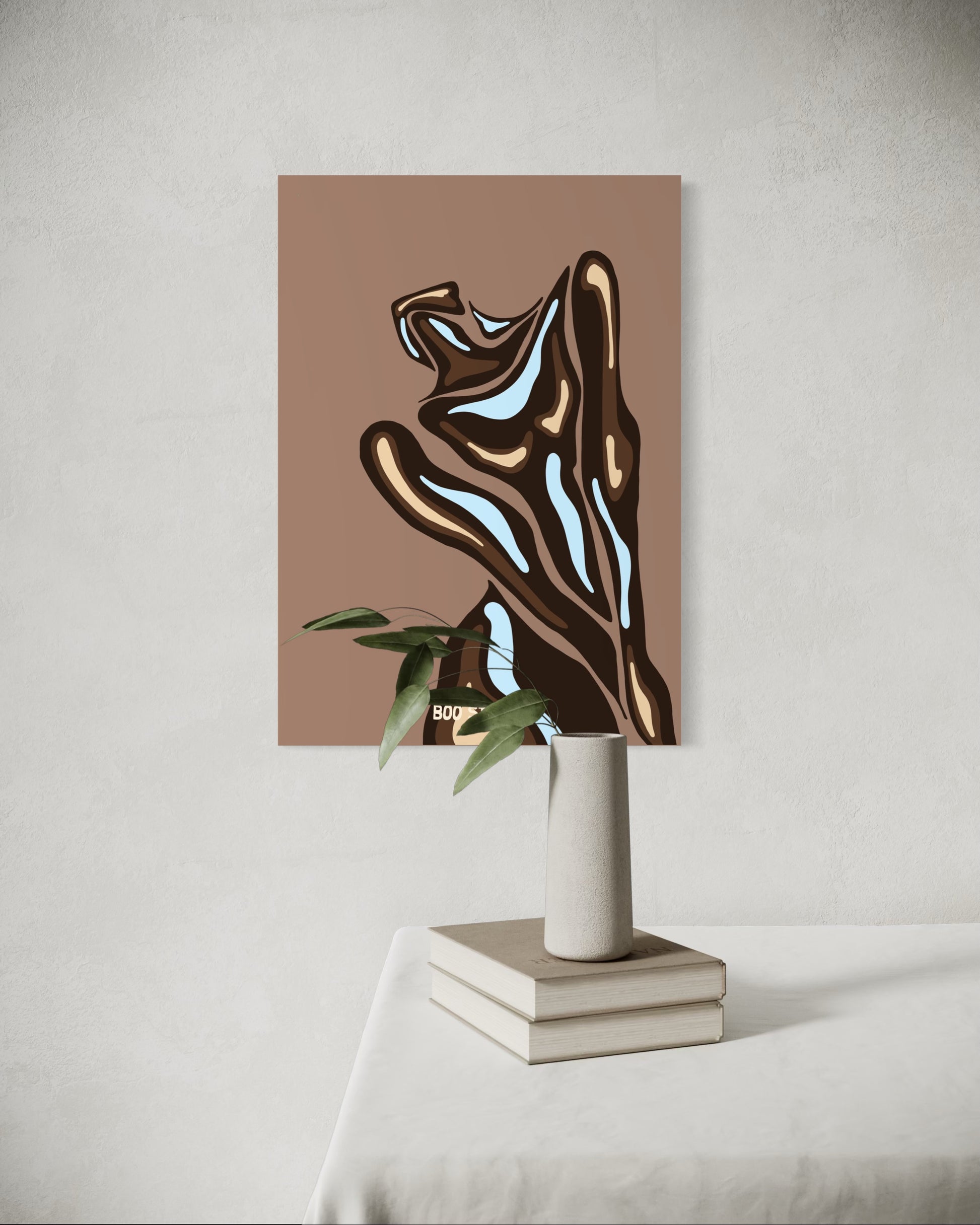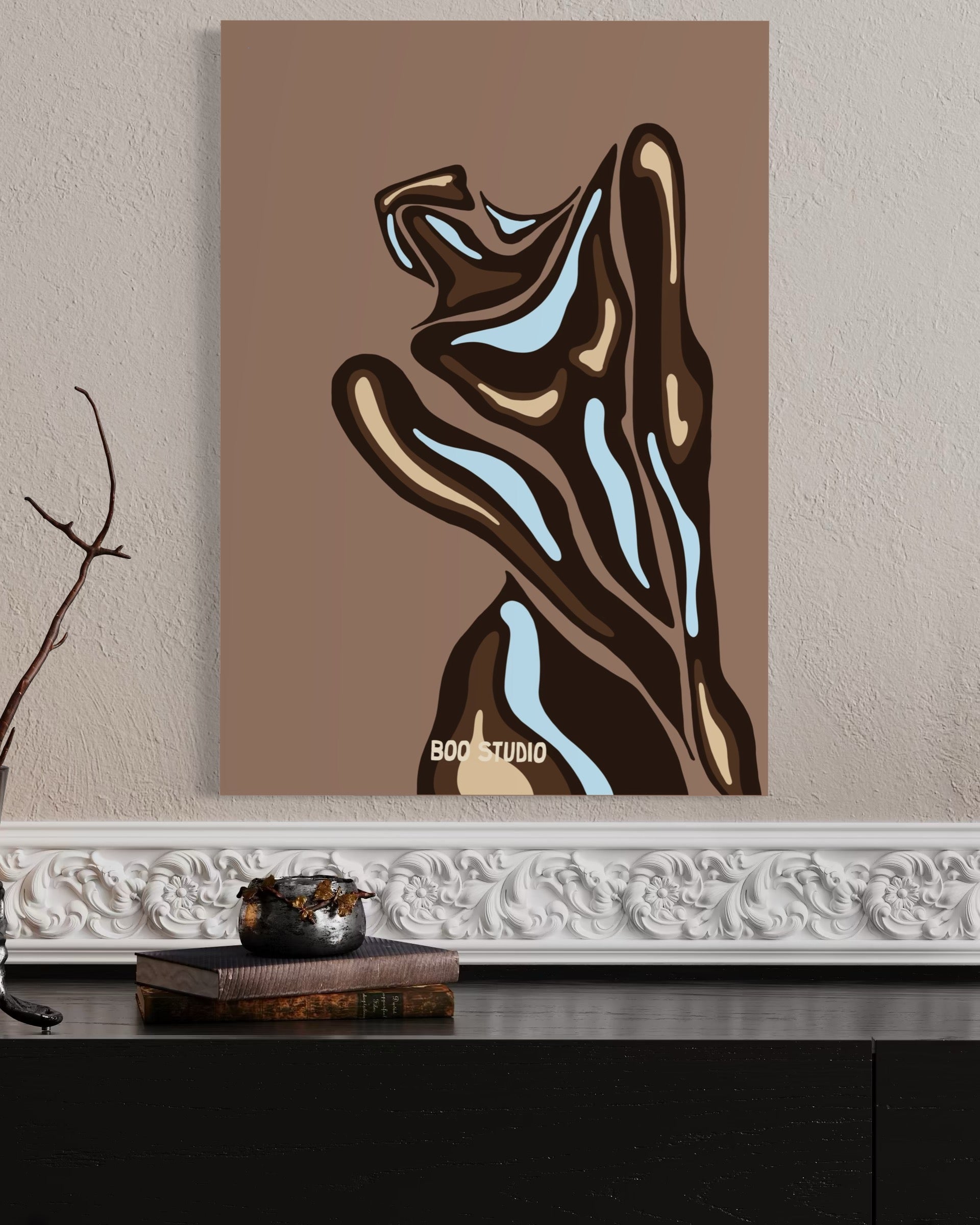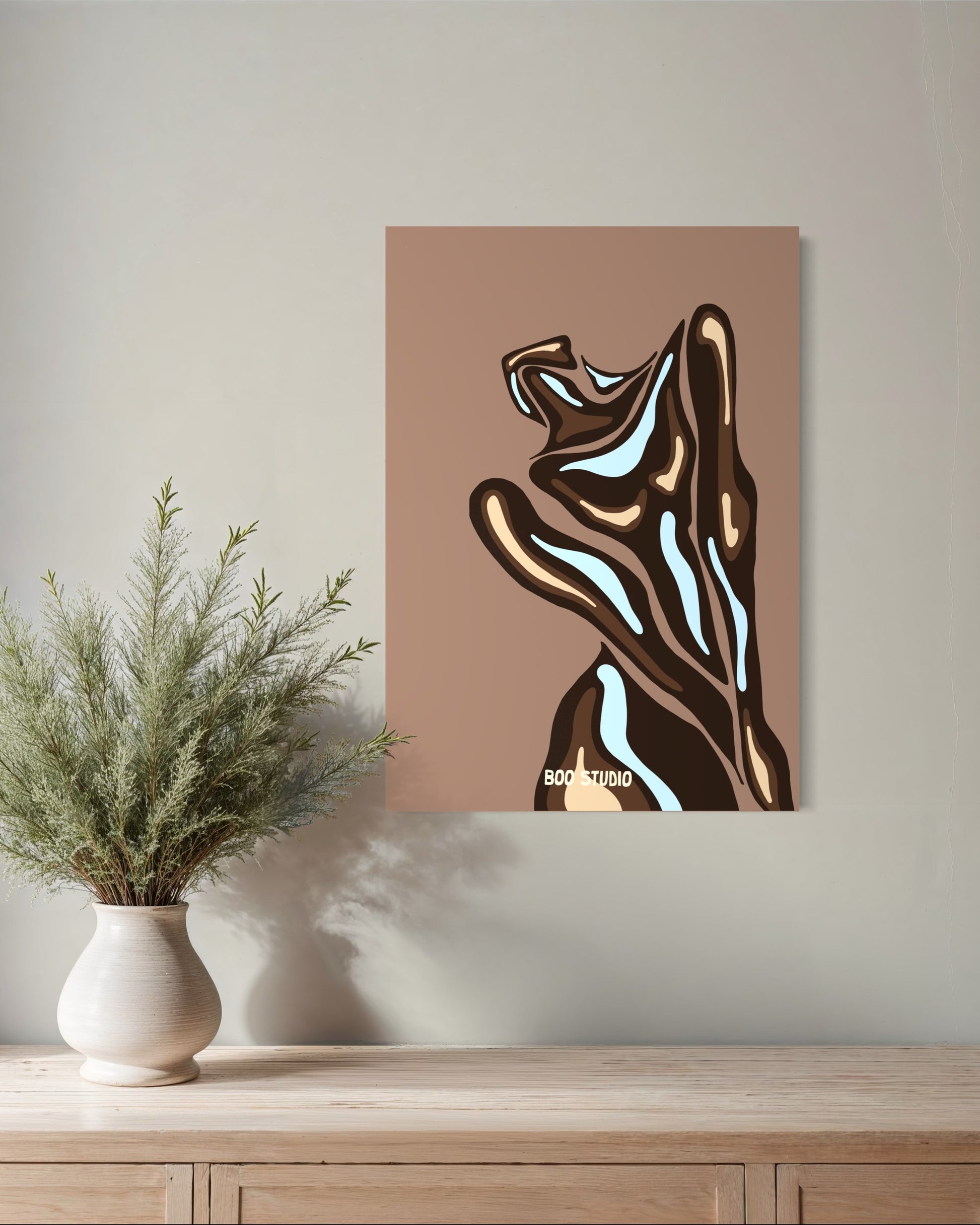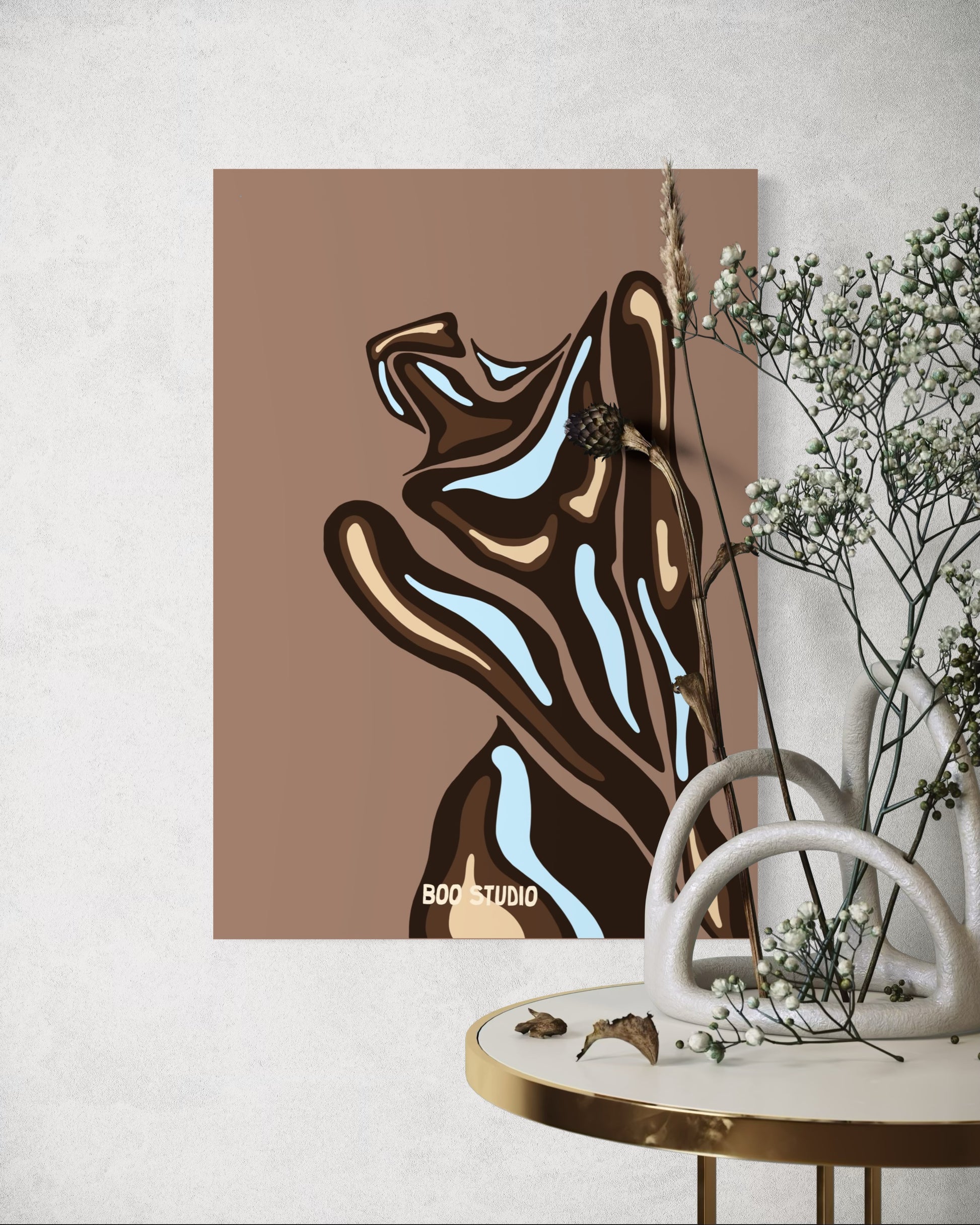 Épurée et sensuelle, l’affiche “Désir” révèle la grâce d’un corps féminin à travers un dégradé subtil de Baby Blue, Beige et Moka .