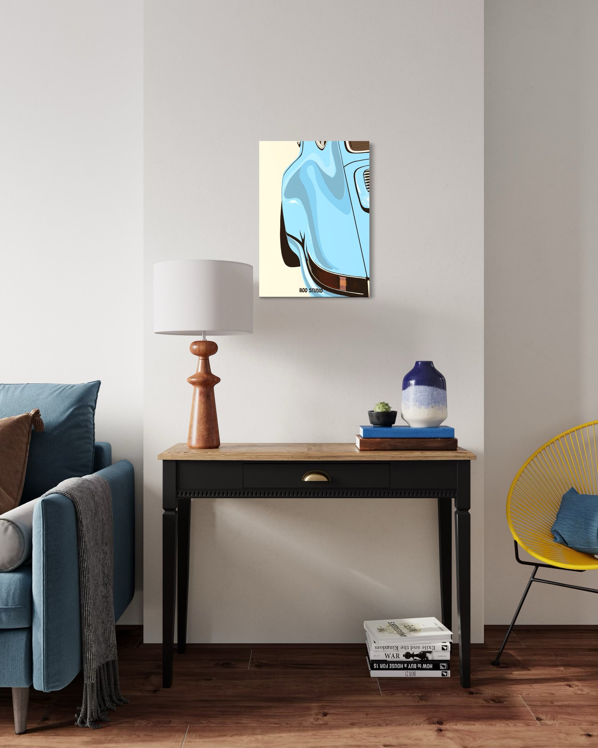 Cette création est idéale pour les passionnés d’automobiles et d’esthétique contemporaine, apportant une touche de calme et de distinction à votre espace.