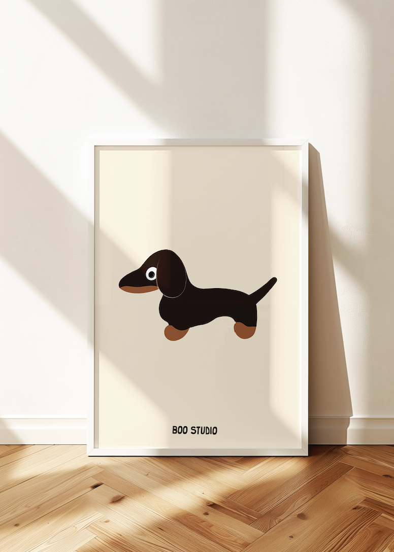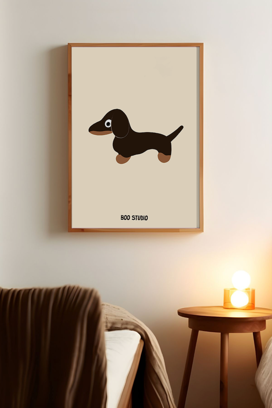 Idéale pour les amoureux des chiens et du design épuré, cette affiche est imprimée avec des couleurs éclatantes sur papier de qualité supérieure. Parfaite pour une chambre, un salon ou même un bureau, elle apporte une note joyeuse et contemporaine à vos murs.