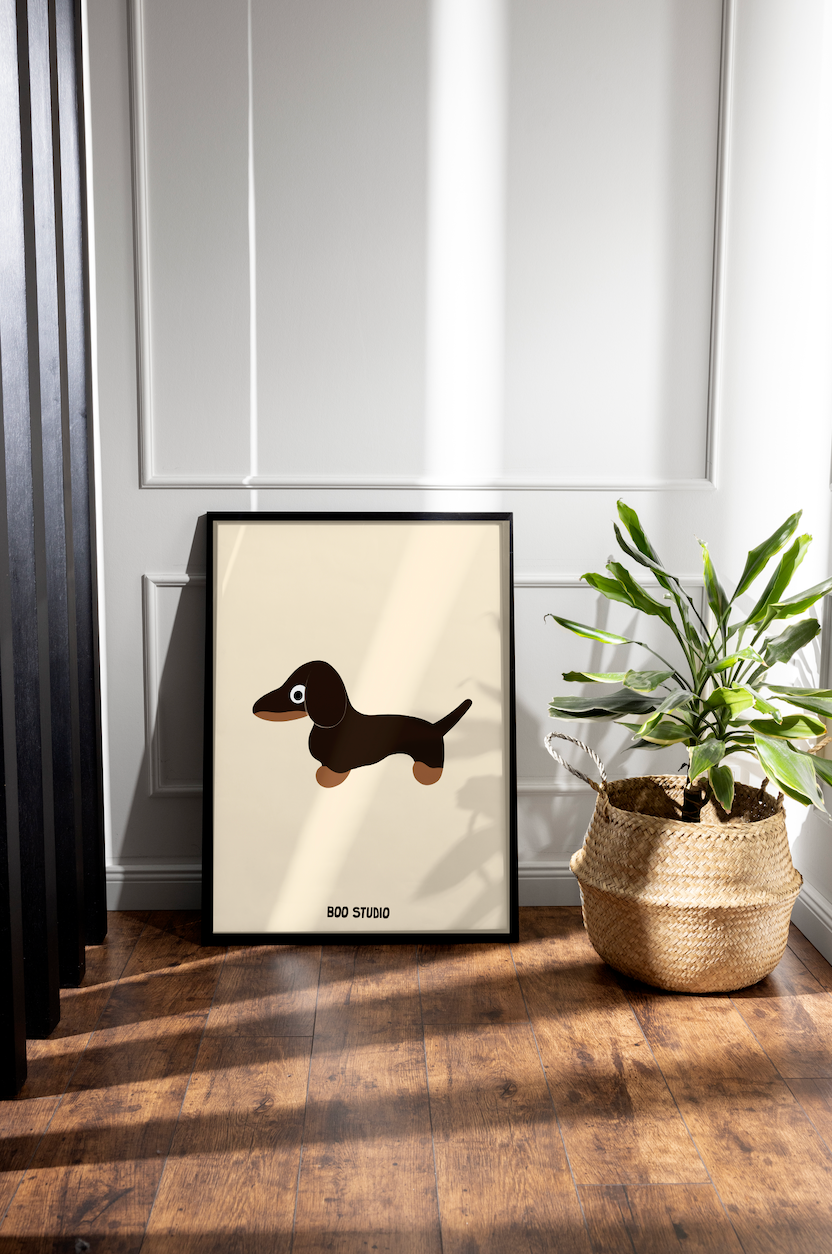 Ajoutez une touche de charme à votre intérieur avec l'affiche "Le toutou" , une illustration unique représentant un adorable teckel marron à taches camel , inspirée des porte-clés tendance du moment. Sur un fond beige doux et élégant , cette création minimaliste et chaleureuse s'intègre parfaitement dans toutes les décorations modernes, scandinaves ou bohèmes.
