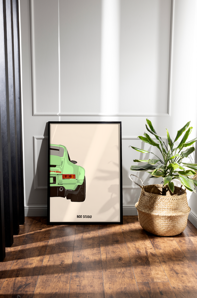 Ajoutez une note automobile chic et contemporaine à votre décoration avec l'affiche "Porsche Matcha" . Sur un fond beige minimaliste , une Porsche 911 vert matcha est représentée à l'arrêt sur la partie gauche de l'illustration, alliant élégance intemporelle et touche tendance.